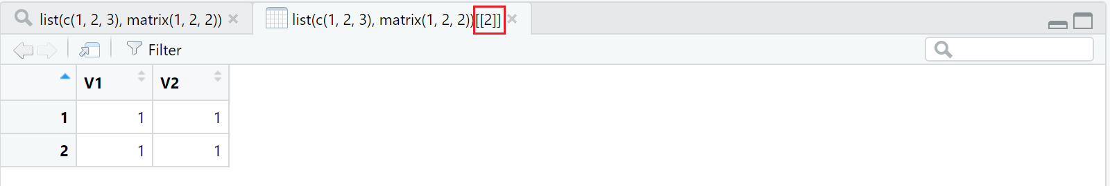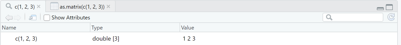 View()无法便利地查看 vector ,长 vector 会被折叠且无法展开,如果需要像 matrix 或 data.frame 一样查看 vector,可以使用View(as.matrix())的组合。