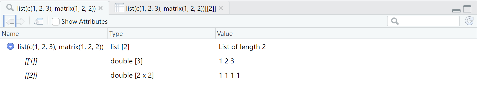 View()只能查看 list 的结构,需要根据具体情况使用取子集的方式查看元素。