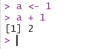 那么后续在代码中用到a时, R 就会在 Global Environment 里面寻找。例如在 Console 中执行a + 1, R 就在 Global Environment 里面找a,找到以后就拿出来做加法: