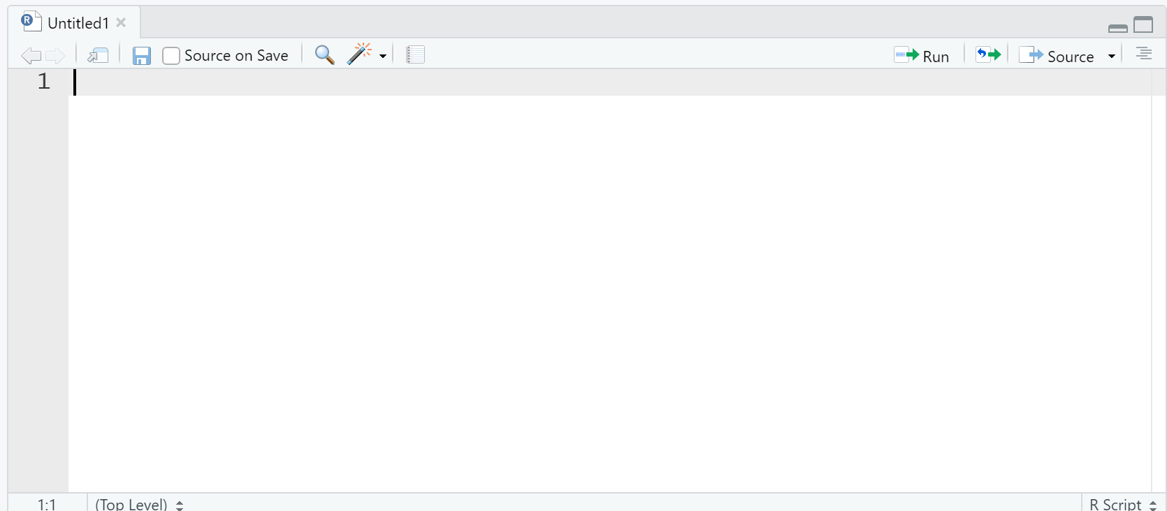 不管是新建 R 脚本(script),还是打开已经存在的 R script,都会出现在这个窗口。例如通过顶部 File 菜单下的 New File 按钮快速新建一个R script。