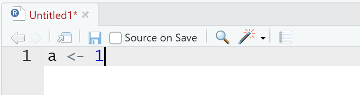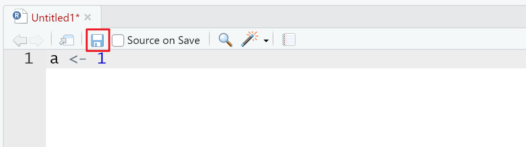 如果在 Untitled1 中写了任何的内容,Untitled1 几个字都会变红,并且右上角多了一个 *,提示你当前这个 R script 的内容已经发生了改变了,如下图所示: