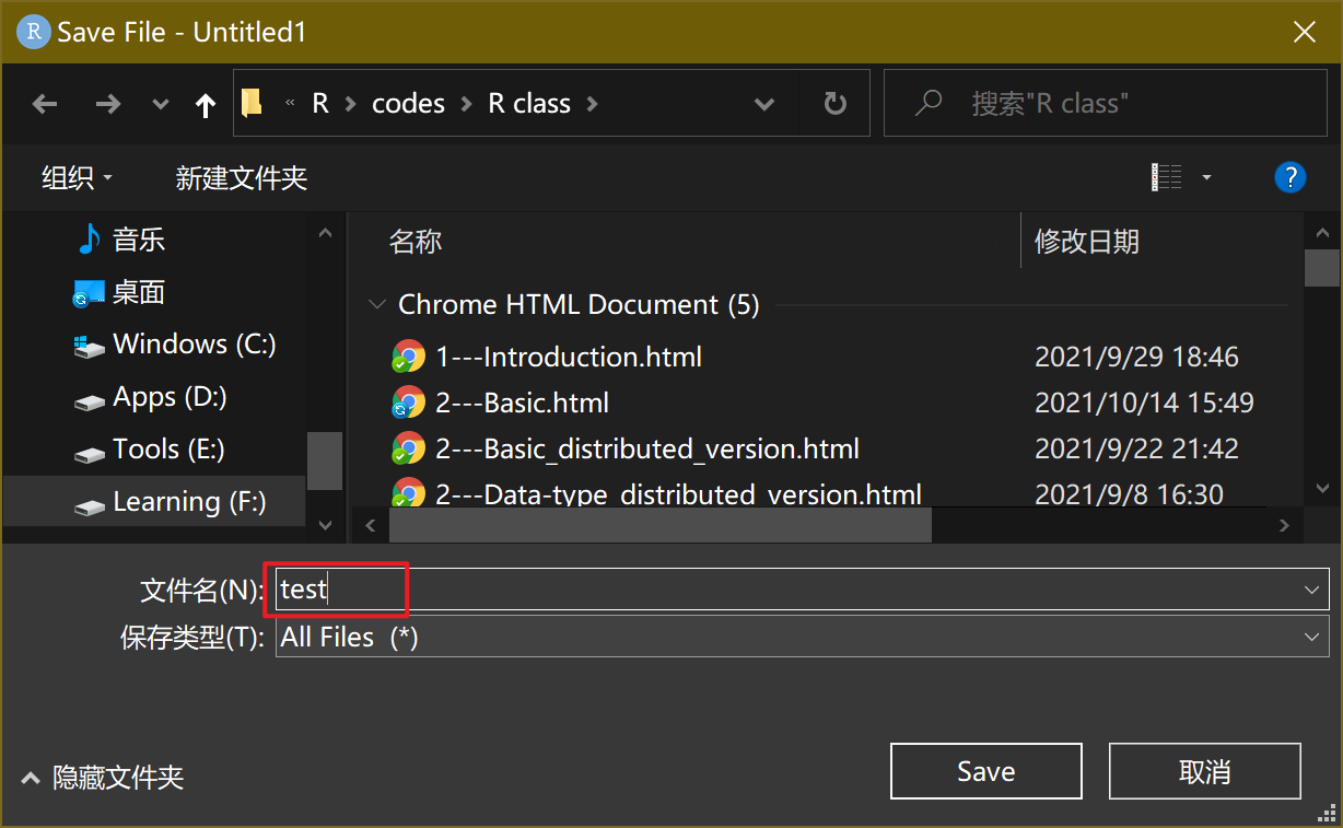 注:.R 是 R script 的扩展名(也称后缀名)。