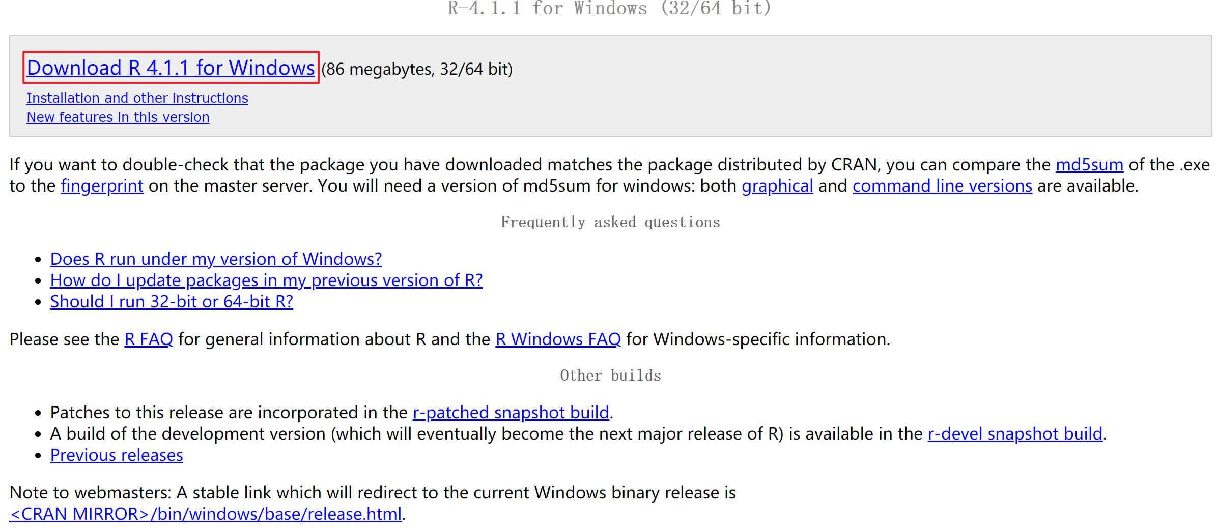 注意:请先安装 R 再安装 Rstudio,不然容易出现打开 Rstudio,Rstudio 提示找不到 R。