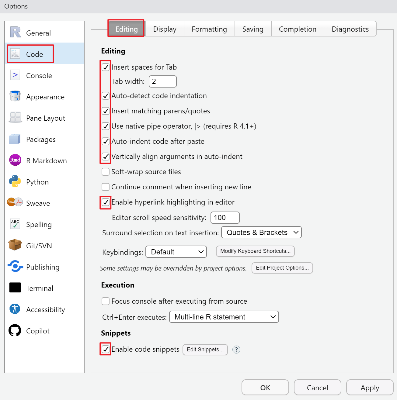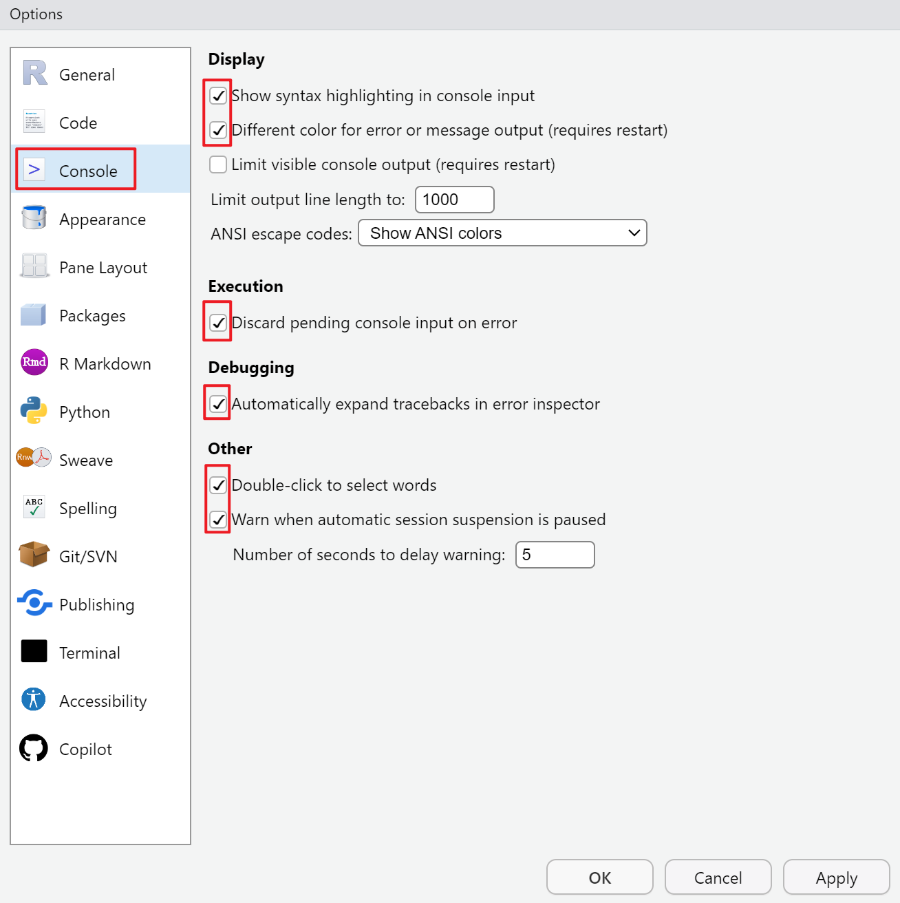 - 设定一个专门存放 R 代码的文件夹(不要放在 C 盘),并设置 Rstudio 启动时自动定位到该目录。