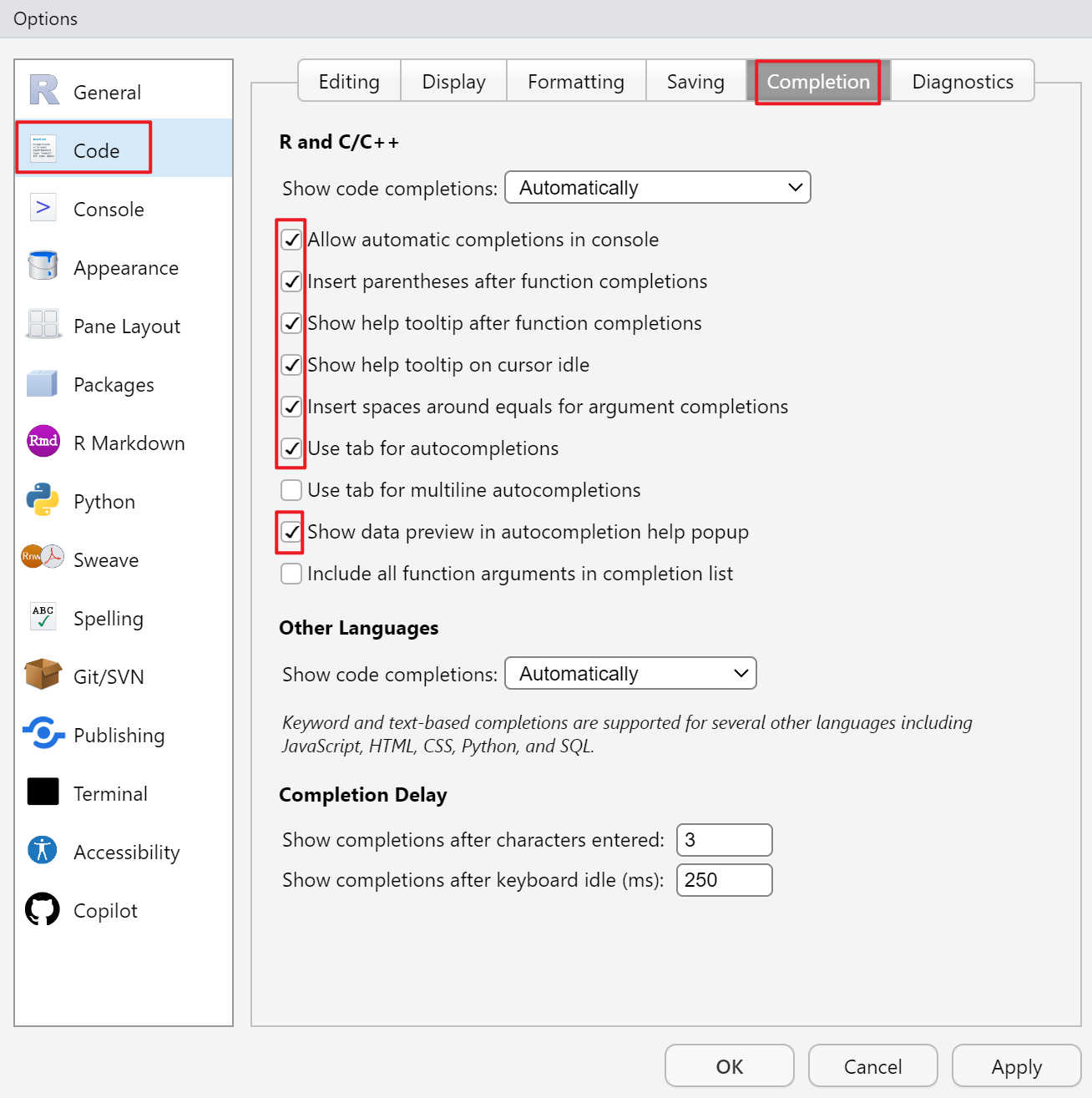 - 将 R 的显示语言调整为英语,并设置为启动配置。具体方式如下: