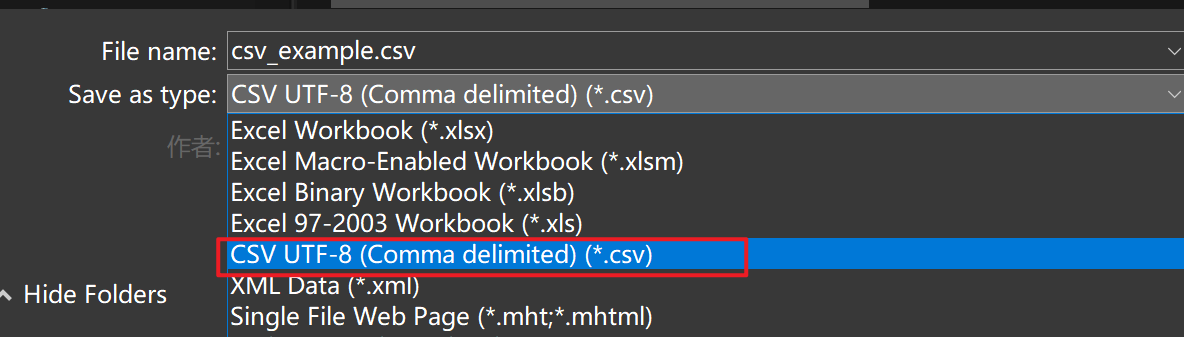 .csv 是一种通用的纯文本文件格式,可以将 .xlsx 文件通过另存为的方式转存成 .csv 文件,如下图:
