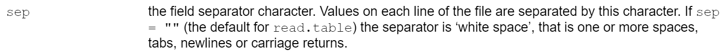 data_txt还是不行,难道是sep = ""没有发挥作用么?去看看read.table()的帮助文档,如下图所示: